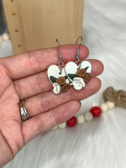 *RTS* Clay Heart Floral Earrings