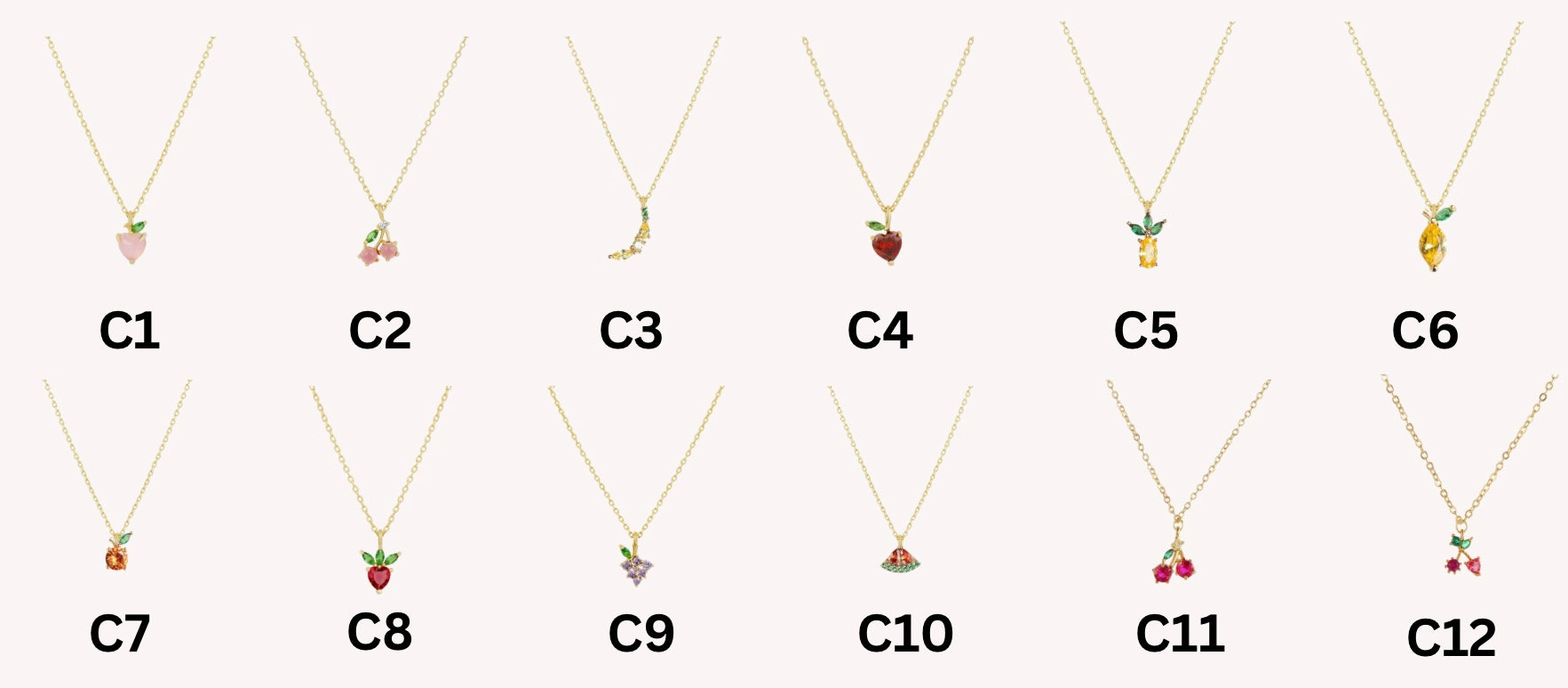 Add a playful touch to your jewelry collection with these adorable copper necklaces, featuring dainty fruit-themed pendants. From vibrant cherries to sweet little grapes, each pendant is delicately crafted to capture the charm of nature’s harvest. The warm copper chain enhances the bright colors of the fruit, creating a fun and stylish accessory that’s perfect for everyday wear or as a thoughtful gift for fruit lovers. Lightweight, cheerful, and full of personality, these necklaces bring a pop of whimsy to any outfit for spring!