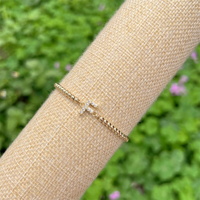 This gold bead and gemstone initial bracelet is the perfect accessory for adding a touch of elegance to any outfit. Crafted with high-quality materials, it offers both style and durability. The delicate initial charm adds a personalized touch, making it a great gift for yourself or a loved one