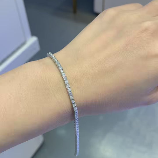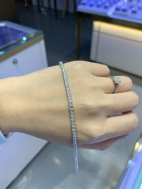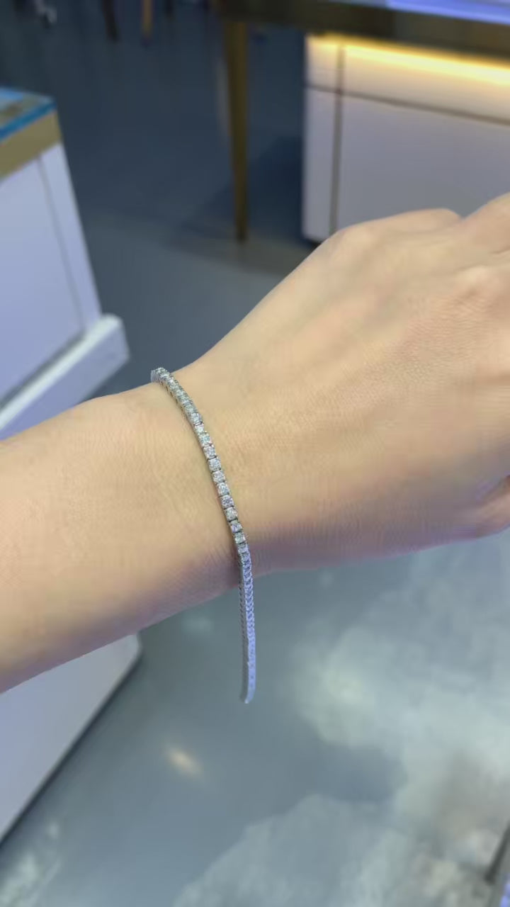 Classic elegance meets modern brilliance in this stunning Moissanite tennis bracelet. Featuring a continuous line of expertly set moissanite stones, this timeless design delivers unmatched sparkle and fire that rivals traditional diamonds. Each stone is carefully placed to catch the light from every angle, creating a radiant look that elevates any outfit