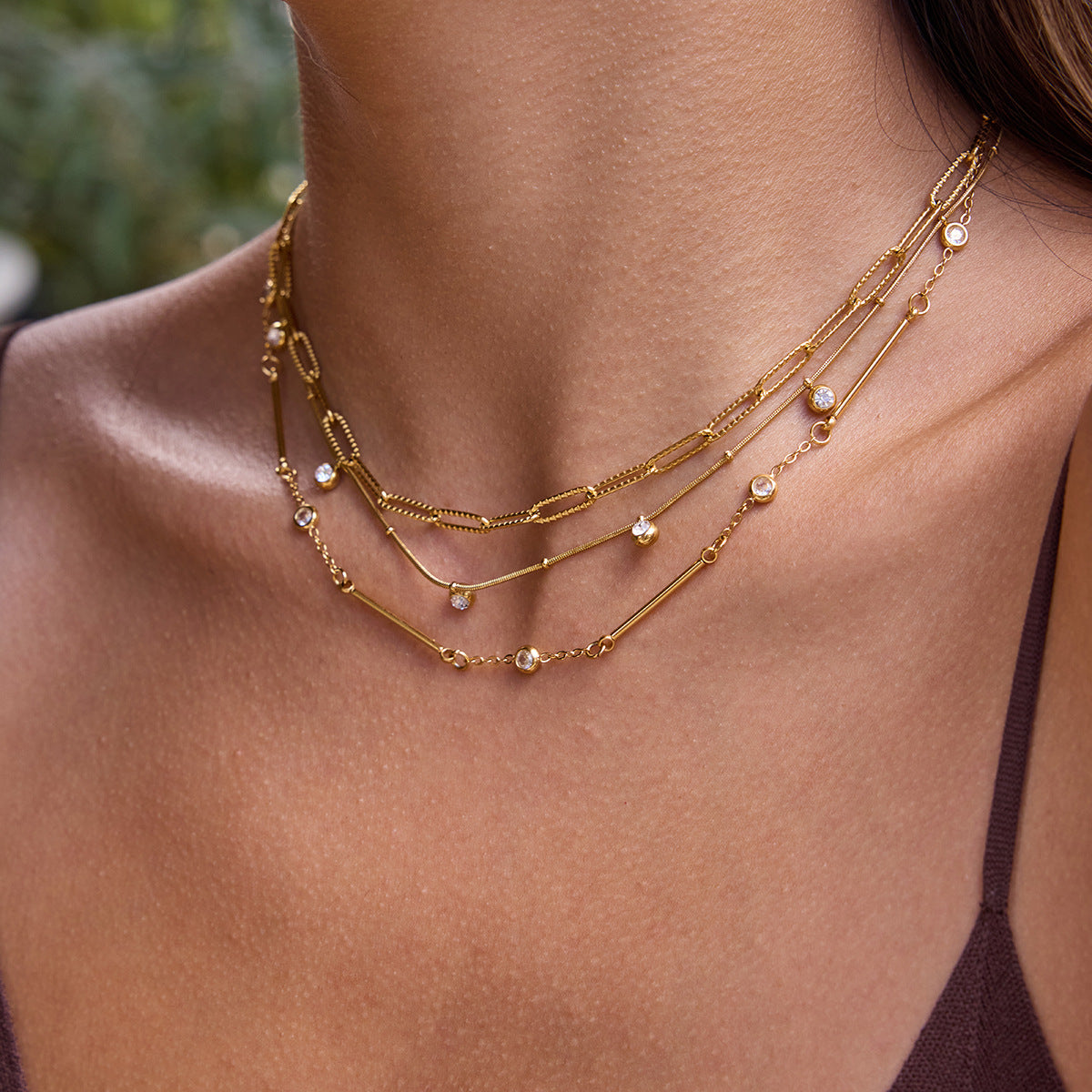 Preorder: Triple Layer Bar and Bezel Necklace Set