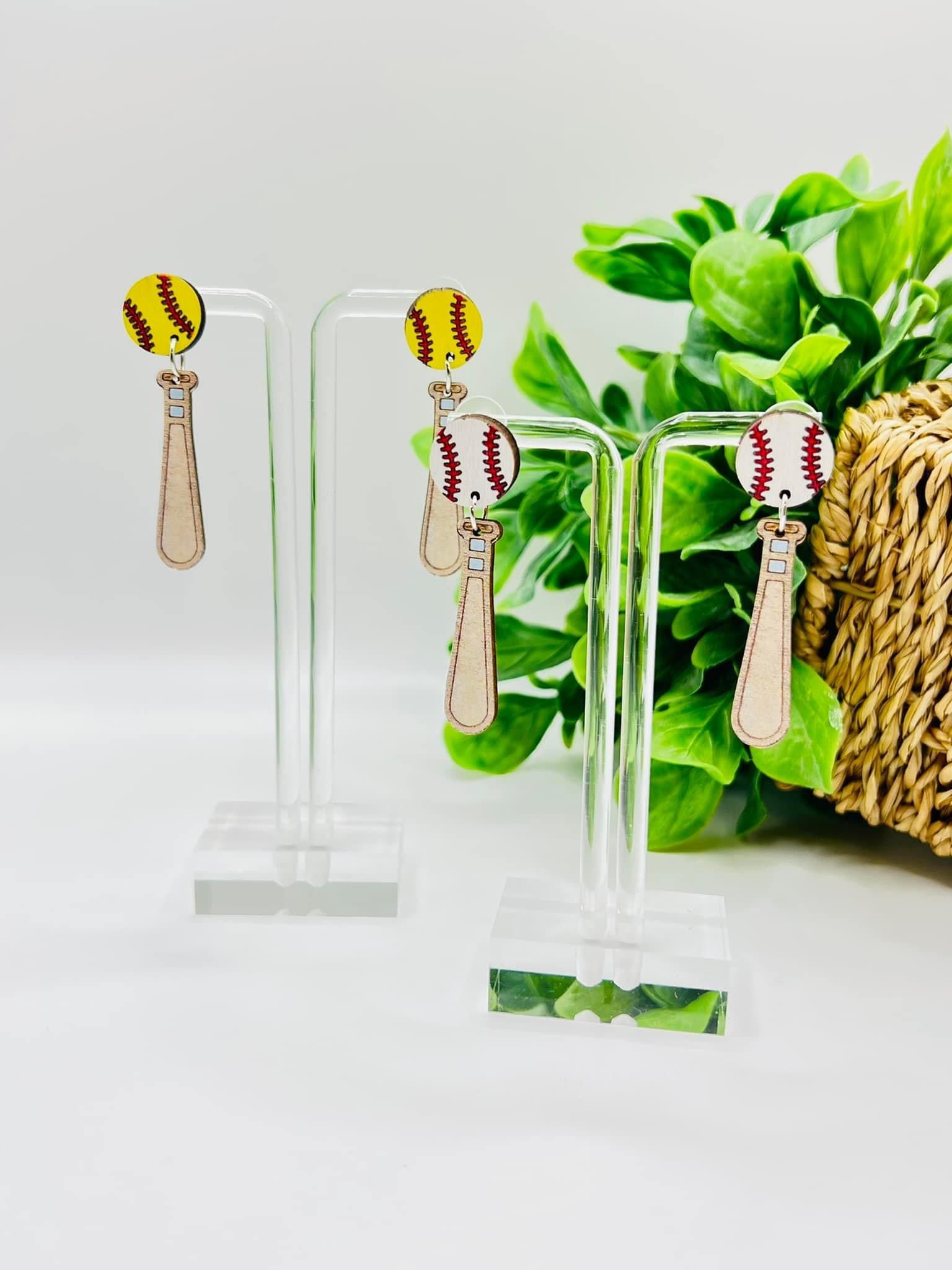 Get ready to hit a home run with these Wooden Drop Studs. Made from durable wood, these unique earrings feature a playful design of a sports ball and bat. Perfect for sports lovers and those who like to add a quirky touch to their outfits. Swing into style with these fun studs!